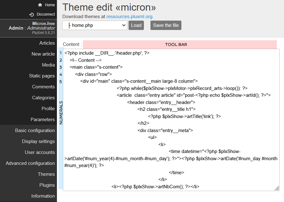 Plugin in admin panel to create line numbering, toolbar and etc.